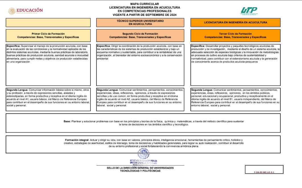 sino que también anticipa y se adapta a las transformaciones y desafíos emergentes de la Licenciatura en Ingeniería en Acuicultura. Su capacidad para integrar
