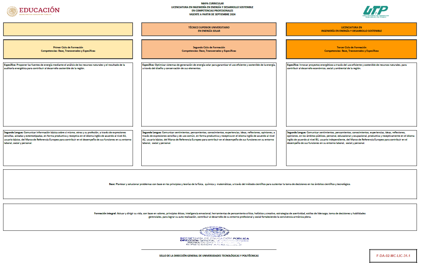 El Egresado de la Licenciatura en Ingeniería en Energía y Desarrollo Sostenible se distingue por poseer las competencias profesionales esenciales que respaldan su desempeño con éxito en el dinámico entorno laboral, abarcando tanto el ámbito local como el regional y nacional. Este perfil integral no solo se ajusta a las demandas actuales del sector, sino que también anticipa y se adapta a las transformaciones y desafíos emergentes de la Licenciatura en Ingeniería en Energía y Desarrollo Sostenible. Su capacidad para integrar conocimientos técnicos especializados, habilidades analíticas y una visión innovadora lo posiciona como un profesional altamente cualificado y preparado para contribuir significativamente al avance de la disciplina y a la resolución eficiente de problemáticas complejas en distintos contextos.