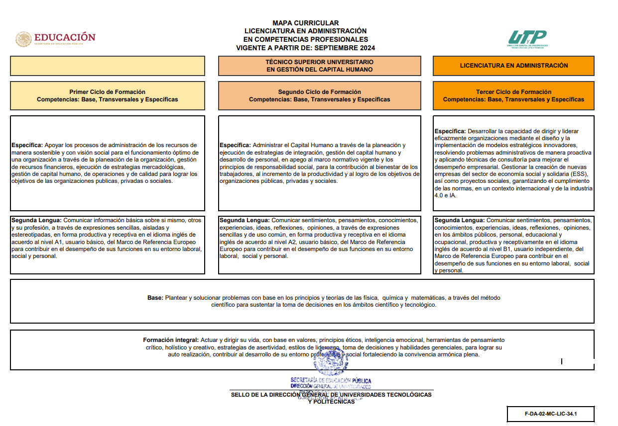 ● Habilidad básica de administración para contribuir en el ámbito empresarial y organizacional.
