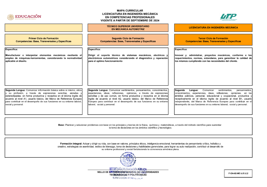 que también anticipa y se adapta a las transformaciones y desafíos emergentes de la Licenciatura en Ingeniería Mecánica. Su capacidad para integrar conocimientos técnicos especializados, habilidades analíticas y una visión innovadora lo posiciona como un profesional altamente cualificado y preparado para contribuir significativamente al avance de la disciplina y a la resolución eficiente de problemáticas complejas en distintos contextos.